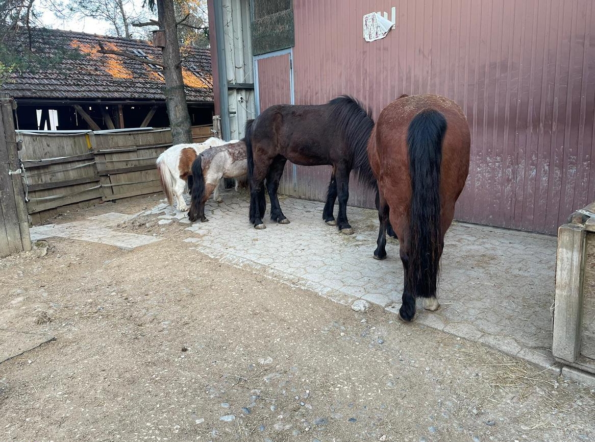 Der Stall verfügt über fliessend Wasser, einen Stromanschluss (Teekocher, Herdplatte etc.) , eine Toilette, ein Reiterstübchen und eine Sattelkammer für die Zweibeiner. Weiter haben wir für die Ponys einen grossen Schnitzelplatz, der auch für Bodenarbeit genutzt werden kann, zwei Unterstände, die mit Holzpellets eingestreut sind sowie einen befestigten und damit weitestgehend matschfreien Auslauf und zwei Weiden. Weidegang nach Absprache / Möglichkeit. Wir füttern zuckerarmes Heu aus Netzen, zudem haben die Ponys Stroh zur freien Verfügung.