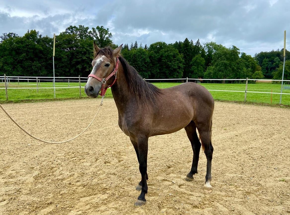 Nun seit drei Monaten vom Boden aus gearbeitet (der Wallach ist 3,5 Jahre alt) wird sicher noch ein halbes Jahr vergehen bis er für die Ausbildung unter dem