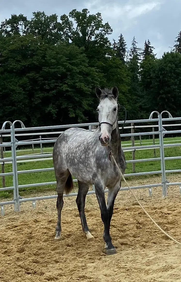 Mit 5,5 Jahren ist die Lusitano Stute bereit ihre nächsten Schritte zu gehen, am Boden sehr willig und schnell lernend, wird es nun Zeit sie unter dem