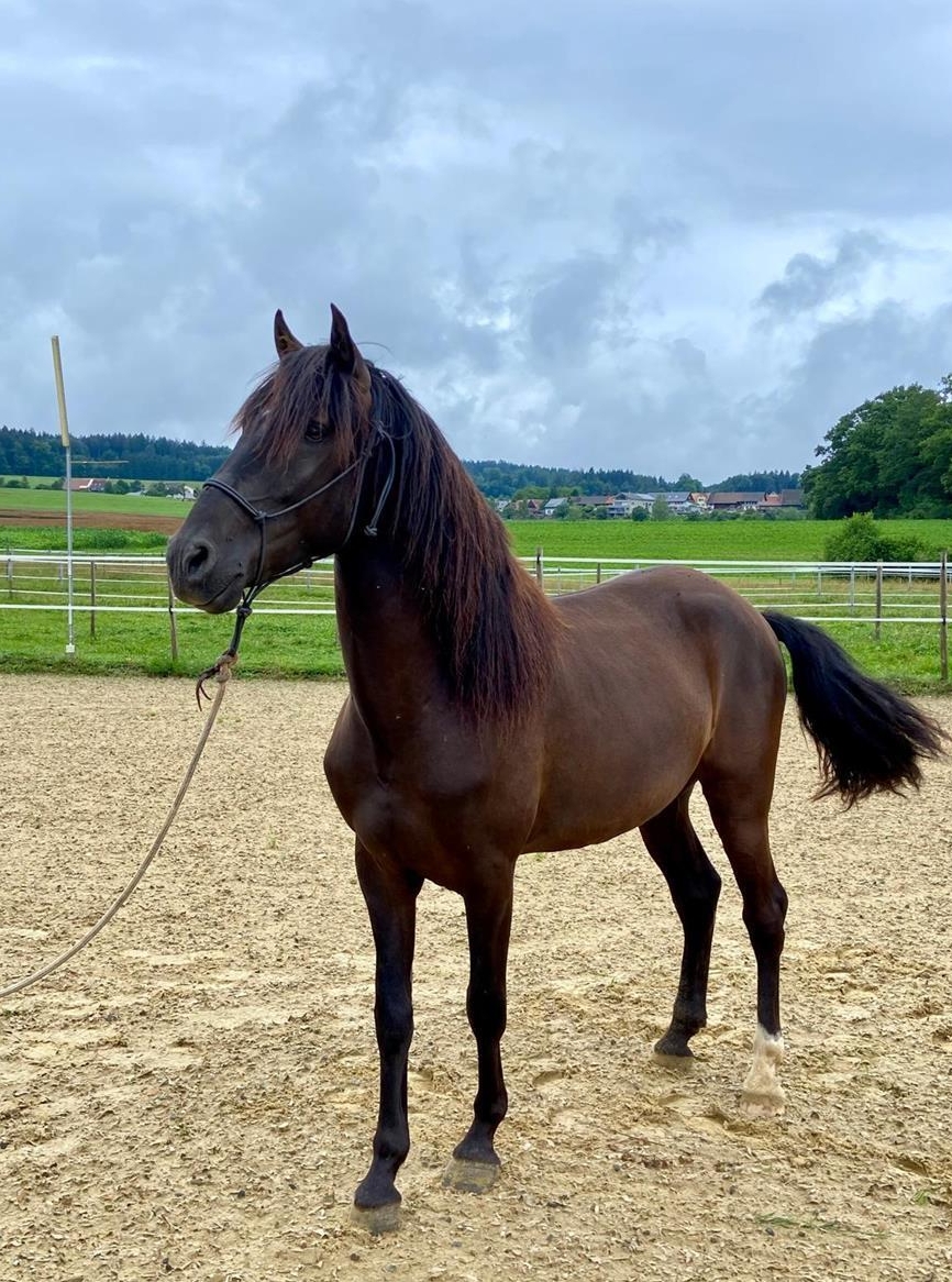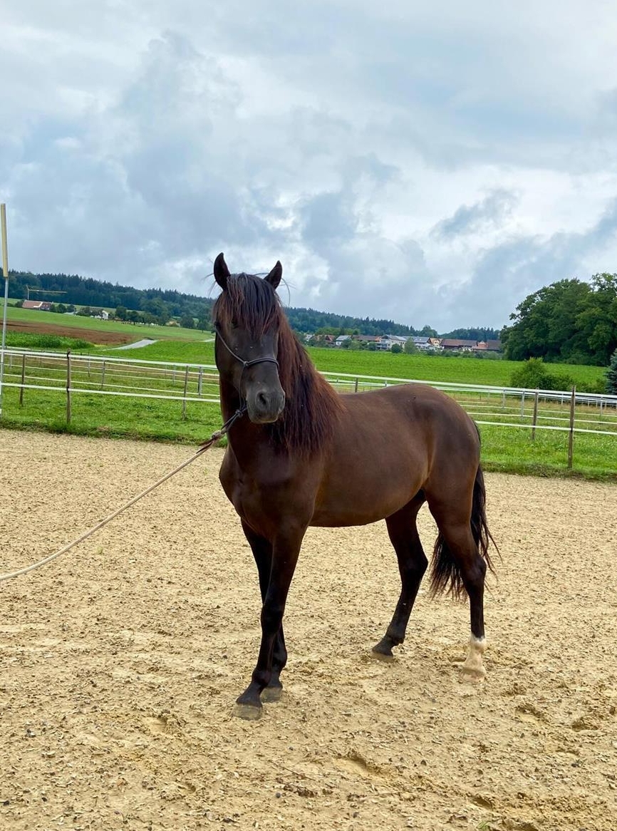Lusitano Wallach. Mit seinen 4,5 Jahren ist der Wallach schon ein Kraftpaket und weiss zu beeindrucken. Kompakt, wendig und stark aus der Hinterhand zeigt er dass viel Potential vorhanden ist. Ja der Lusitano Wallach ist auch ein lieber Kerl aber gehört in erfahrene Hände.