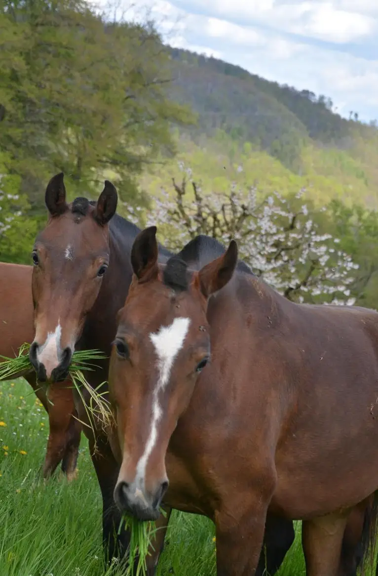 Nania v. Fürberg (Abs. Norway / Vitali/Népal) ist 3-jährig und wird momentan schonend im Reiten und Fahren für den Feldtest im September 2024 ausgebildet. Nania ist sehr sozial, liebenswürdig und eine verschmuste Dame. Die Freiberger Stute besitzt gute Grundgangarten, hat eine schöne braune Farbe und besticht mit ihrem tollen Charakter. Ihre Mutter Vanea v. Fürberg sowie ihr Vater Norway sind bei uns im
