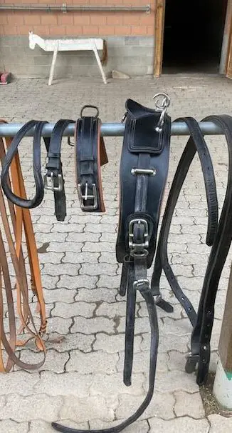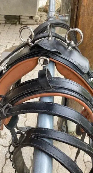 - Brustblatt, Halsriemen, Selett, Hintergeschirr, Zugstränge, Leinen, grosser und kleiner