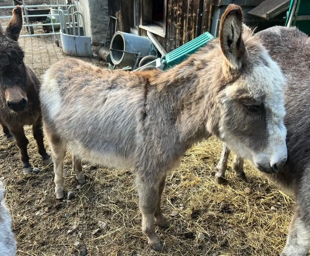 Zur Bestandesreduktion verkaufen wir einen Kleinesel. Der Hengst wurde im Juni 22 geboren. Er war schon mit Schafen auf der Weide. Wir nutzen unsere