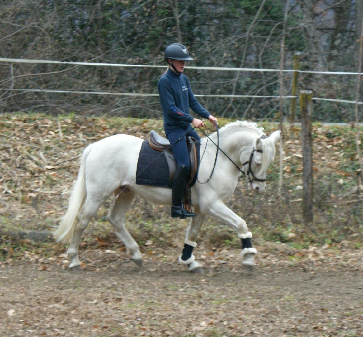 Casper ist äusserst angenehm im Umgang und leicht in der Anlehnung. Trotz seines jungen Alters zeigt der Pony Wallach sich mutig und entspannt. Der Wallach arbeitet bereits gut in der Dressur und wir befinden uns derzeit in der Ausbildung von Schulterherein und Traversalen. Zudem springt Casper gerne, jedoch fehlt ihm noch etwas Erfahrung in diesem Bereich.