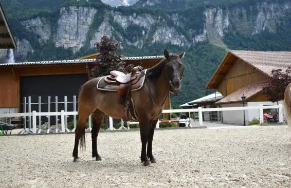 Quarter Horse Wallach. Ausgebildet wurde der Wallach in der Disziplin Reining, jedoch ist er mittlerweile ein richtiges Allroundpferd. Ob Ausreiten, Bodenarbeit, Freiarbeit oder auch Arbeiten in der Halle. Der Wallach macht bei allem gerne mit. Ich bin einige Jahre mit Ihm Turniere gegangen in verschiedenen Disziplinen, dies ist jedoch zeitlich bedingt im Moment nicht mehr möglich.