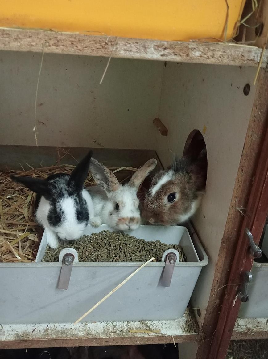 Kaninchen Zibben mit ihre 4 Jungen. Das Mutter