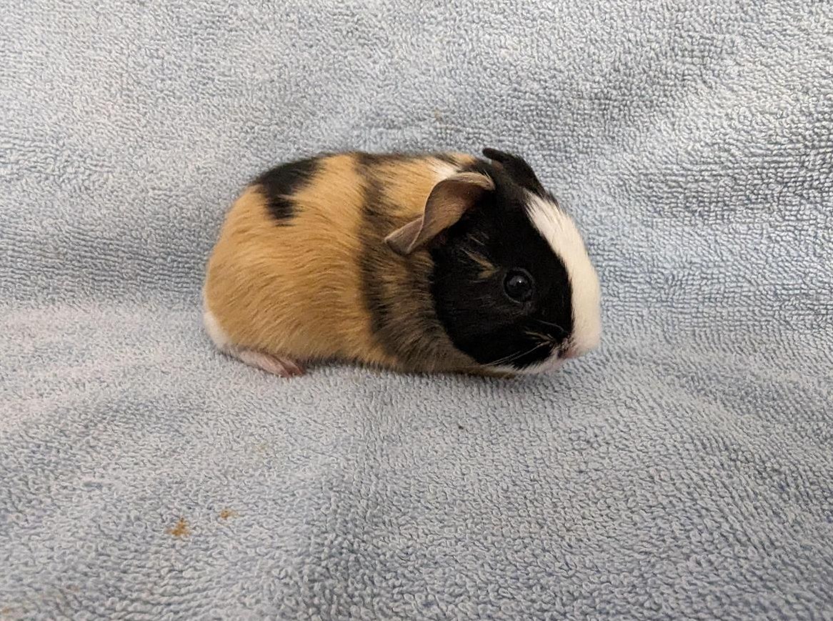 Die Meerschweinchen Mutter ist ein Creme-Weiss-Schwarz Glatthaar und der Vater ein Schocko-Weiss-Schwarz US Teddy. Der Meerschweinchen Boy wird frühestens im Alter von 6 Wochen in ein schönes Zuhause (Weibchen Gruppe) abgegeben.