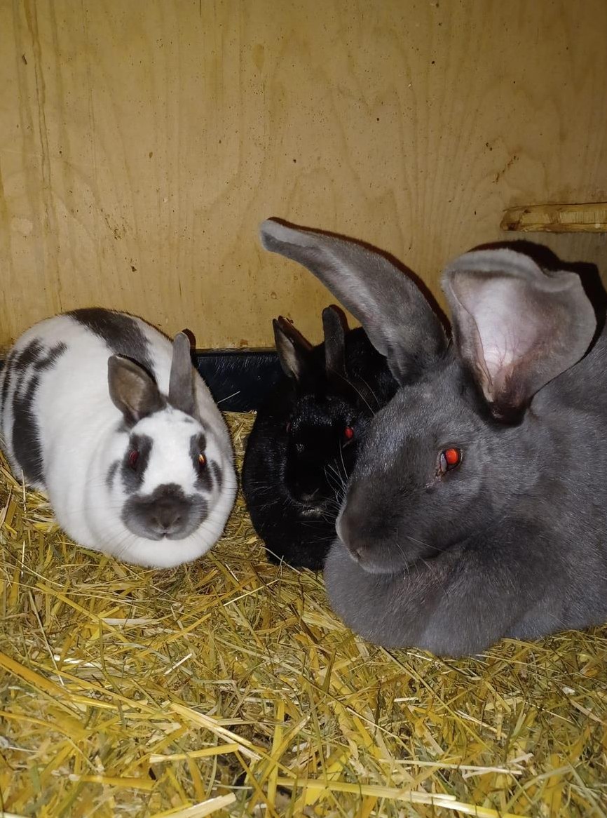 Schecken Kaninchen (graue Schweizer Schecke) und die beiden Zwergschecken suchen ein neues Zuhause, am schönsten mit Auslauf ins Grüne. Sie leben alle drei zusammen in einem grossen