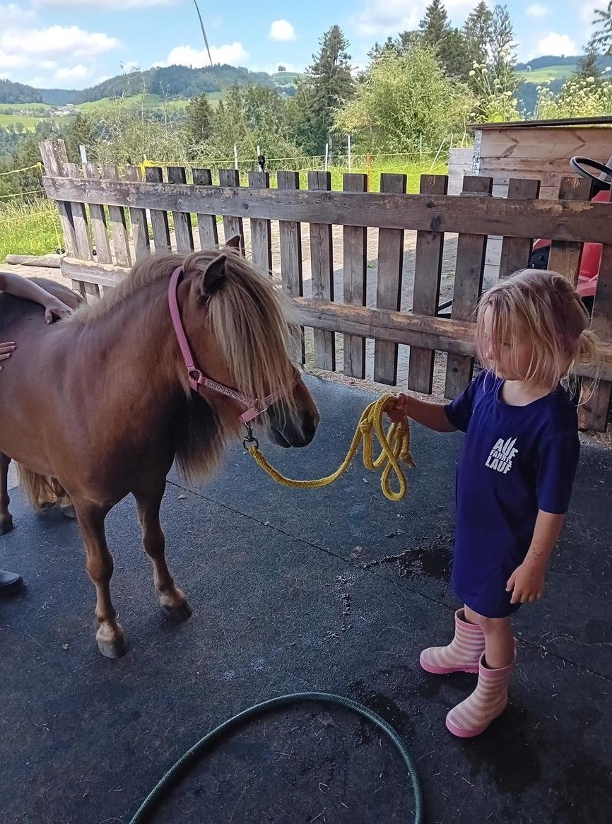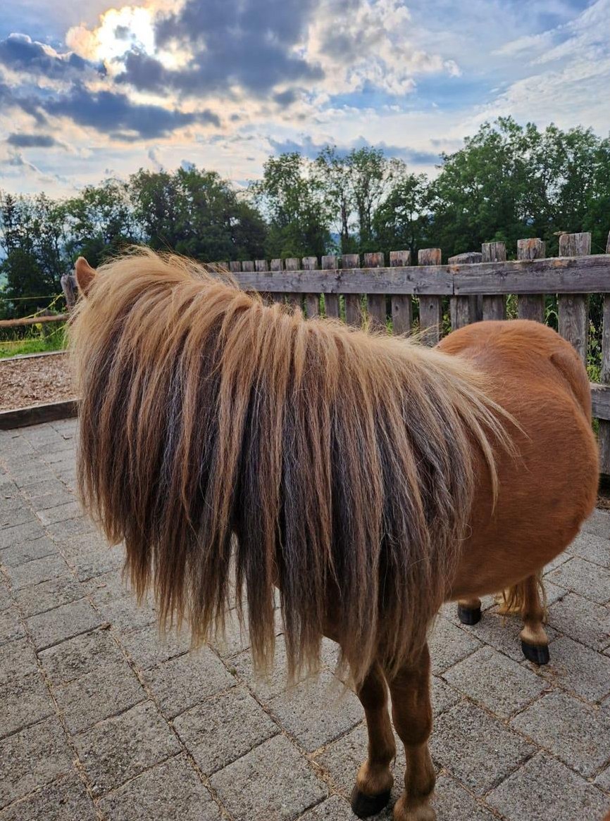 Shetty Stute 2 Jahre alt. Die Stute ist bei uns geboren. Die Shetty Stute hat einen Niederländischen Shetlandpony Pass, da sie aus einer Niederländischen Zucht ist. Ihr Charakter ist neugierig und sehr menschenbezogen. Im Umgang mit Kindern ist sie aufgewachsen. Die Shetty Stute liebt es geputzt und umsorgt zu werden. Das führen am