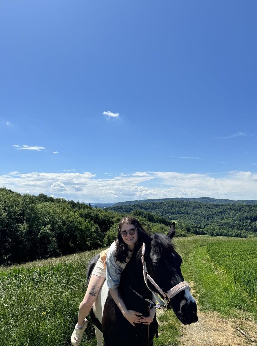 Für Vaiana wünsche ich mir jemanden der auch an Bodenatbeit, Longieren usw freude hat. Du hättest einen grossen Sandplatz und eine Halle für Arbeit vom Boden aus zur Verfügung, aber könntest auch im risigen Gelände alleine oder in der Gruppe Ausreiten gehen.
