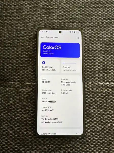 Smartphone mit beeindruckendem 6.8"-Amoled Display mit einer dynamischen Bildwiederholrate von 1 bis 120 Hz. Zugeklappt lassen sich Infos auch vom grossen 3.26" Amoled-Display ablesen.