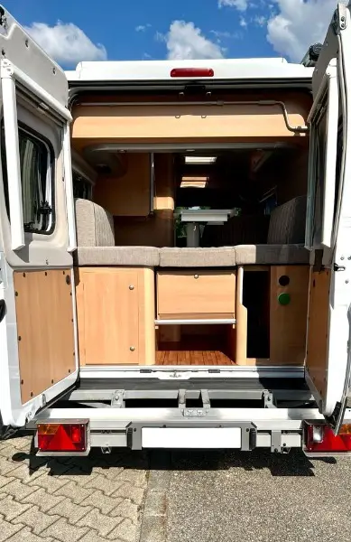 garage arrière - compact - système solaire - batterie 180Ah - grand lit (parfait pour les grandes personnes)