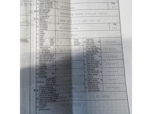 MERCEDES-BENZ, Actros 1841 A, Rückwärtskipper