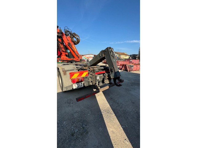 Zubehör: Kran, Hydraulik (Nebenantrieb) , Anhängerkupplung, Differentialsperre, Traktionskontrolle, Nebellampen, Fahrtenschreiber, Radio / CD, Standheizung, Klima, Multifunktionsanzeige, Zentralverriegelung, El. Fensterheber