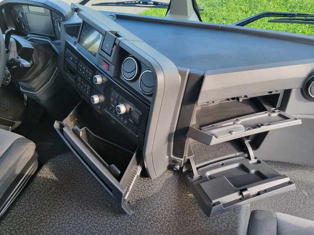 Anhängerkupplung, Differentialsperre, Traktionskontrolle, ABS, Nebellampen, Fahrtenschreiber, Navigationssystem, Klima, Multifunktionsanzeige, Tempomat, Zentralverriegelung, El.