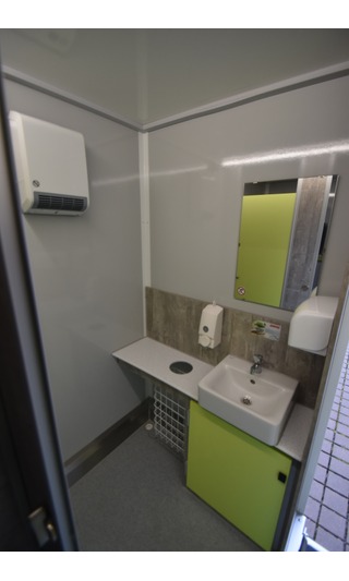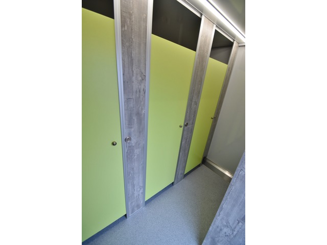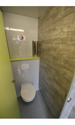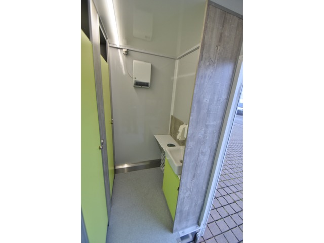 Innenraum hebt er sich deutlich von den üblichen Sanitär-Anhängern ab, was auch die Hemmschwelle für Vandalismus erwiesenermassen deutlich anhebt. Unser Lagerfahrzeug ist aussen weiss, Innen mit grün /grauem Interieur. Optional ist anstelle von grün auch orange lieferbar, auf Anfrage auch grau, rot oder blau. Ausstattung: Das Herrenabteil verfügt über 3x wasserführende Urinale und 1x Toilettenkabine. Das Damenabteil verfügt über 3x Toilettenkabinen. Alles ist hängend montiert für eine einfache