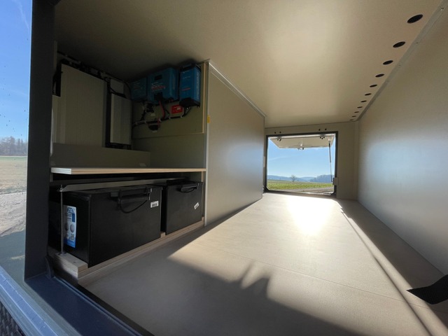 Fahrerhaus - Edelstahl Duschwanne - Trenntoilette Nature's Head Technische Ausstattung: - Aufbaubatterie 2 x 210 Ah GEL (420Ah) - Solaranlage mit 4 x 160 Wp Solara Power S Rahmenpaneelen - Gas - und Elektro-