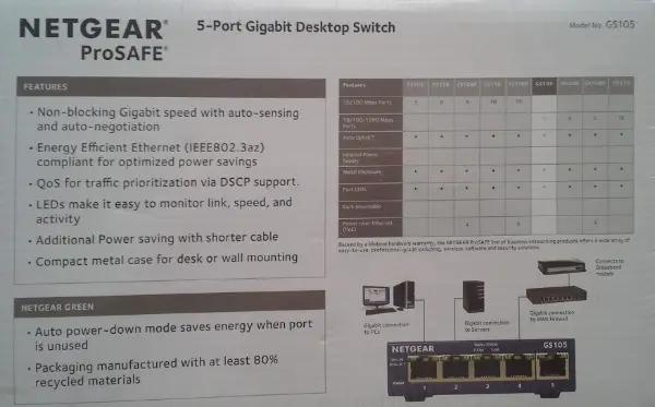 Ethernet Switch Netgear ProSAFE GS105 5-Port Gigabit Switch