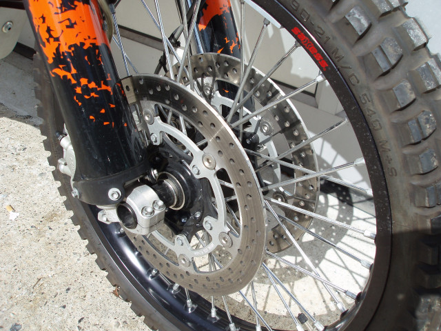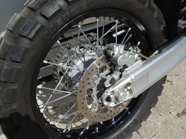 - 300mm Doppelbremsscheiben-Anlage inkl. Vorderrad von der 990 Adenture S inkl. breitere Gabelbrücken und grösserer Bremspumpe