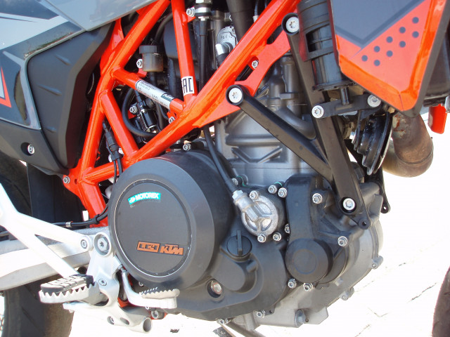 - dieser Motor der neuesten 690er Generation mit 55KW / Doppelzündung inkl. Kennfeld-Einspritzanlage und Traktionskontrolle wäre alleine schon den Verkaufspreis wert, auch die Bremsanlage inkl. Bremsscheiben vo&hi sind unbeschädigt, die Gabel könnte evtl. noch grade sein, hatten wir auch schon gehabt (690SMC-R Rahmen im Lenkkopf gestaucht aber die massive WP-Gabel war immer noch unversehrt und gerade) diese Gitterrohr-Rahmen sind im Lenkkopf so schwach und geben nach, dafür bleibt dann die Gabel oftmals ganz .....