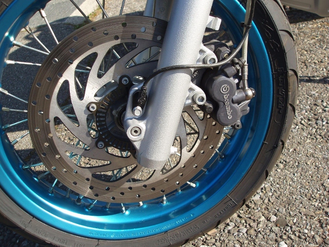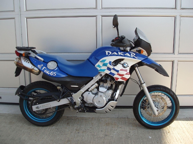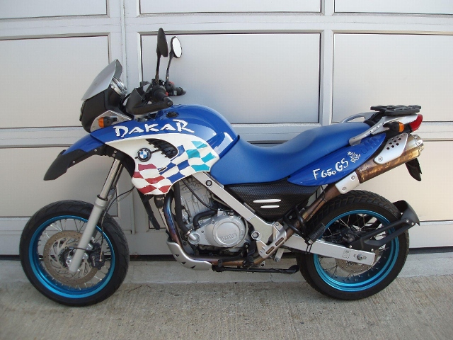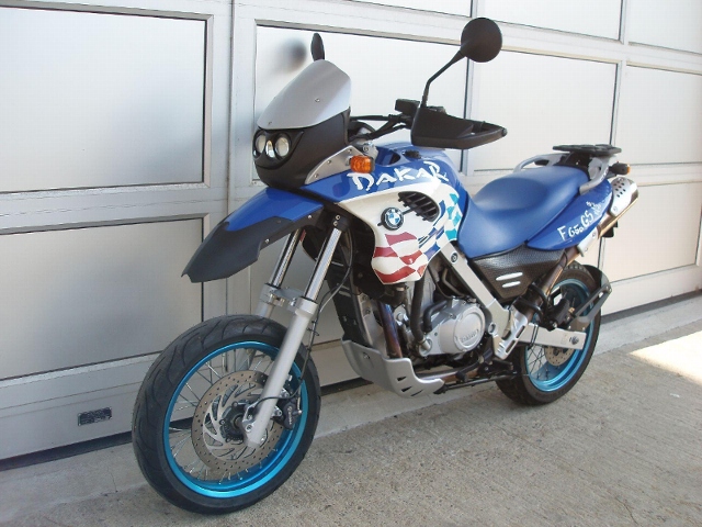 - die blaue F650GS Dakar unterscheidet sich von der normalen GS durch die höheren Federwege und ist relativ selten bzw. als Supermoto erst recht ein Hingucker
