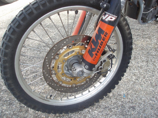 Neben den breitbereiften Supermotos sieht Sie eher aus wie ein schmalbrüstiges Entlein aber Sie hat es dick hinter den Ohren und schon mancher Sumo-Fahrer hat sich an Ihr die Zähne ausgebissen bzw. ungläubig mit dem Kopf geschüttelt, wurde über Jahre und tausende von Schwarzwald-Kilometern in vielen Varianten / Einstellungen / Reifendimensionen und Uebersetzungen getestet, verändert und ständig optimiert um bei möglichst allen Geschwindigkeitsbereichen und Fahrbahnzuständen von 0 bis ca. 180km/h ein gut beherrschbares Renn & Spassgerät unter dem Hintern zu haben, und egal ob Spurrillen, Schlaglöcher, Bodenwellen, Rollsplitt oder nur auf kurvenreichen Asphaltstrassen gefahren wird, keine andere "grosse" 1Zyl. lässt sich so spielerisch und zielgenau fahren wie diese umgebaute 660er, unglaublich wie neutral Sie sich auf jedem Terrain anfühlt und souverän Ihre Spur zieht, nicht umsonst schwören Speedway-Profis zwecks bestem Driftgefühl auf noch grössere 23Zoll Vorderräder, anm: der hier verbaute schmale 18 / 21 Zoll Radsatz mit 125er Softenduro Bereifung (d.h.die ungefederte & rotierende Masse) ist je nach