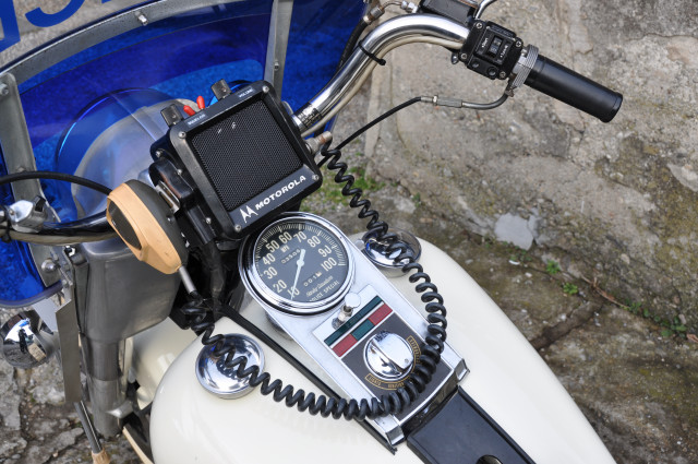 Funkgerät mit Lautsprecher. So wurden sie auch in den USA von der Polizei verwendet. Sie ist 100% Original mit Erstlackierung und wurde nur 3500 Meilen gefahren. Sie hat Schweizer Strassenzulassung.