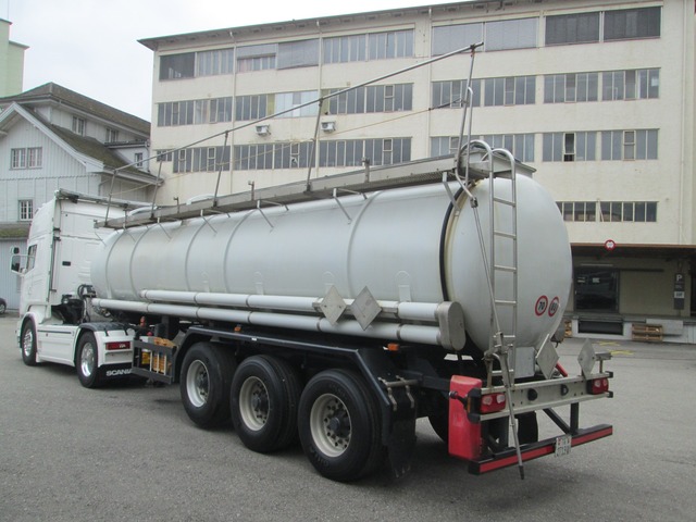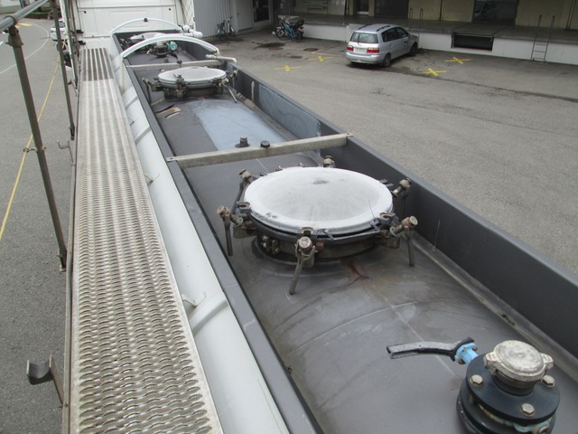 Bemerkung: 22'500 L (1 Kammer) , Drucktank, 3 Domdeckel, Auslauf hinten, V2A Tank, 1.4301 Edelstahl beschichtet, zur Beförderung ätzender, säurehaltiger Chemieflüssigkeiten