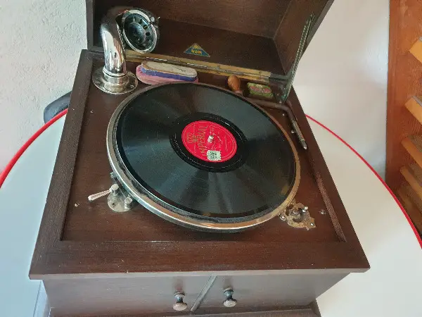 Grammophon mit Handkurbelbetrieb der Marke SUN der späten 1930ziger Jahre.