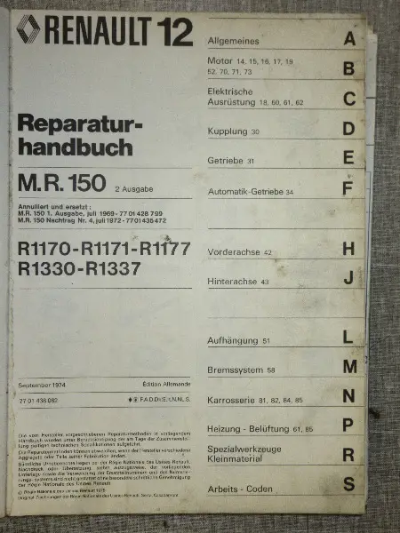 Renault 12 Werkstatt-Handbuch