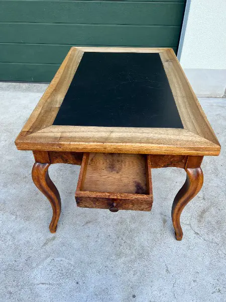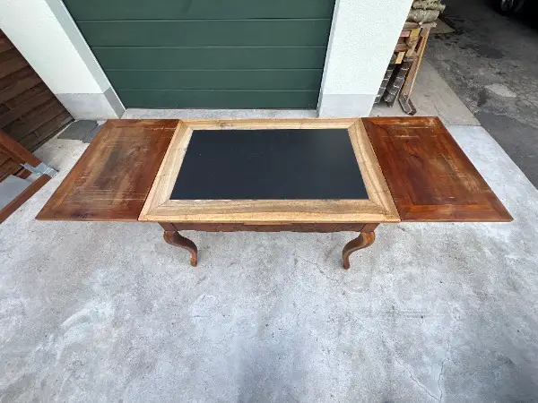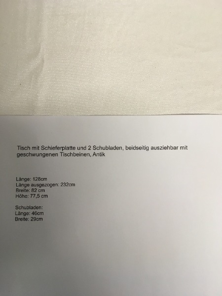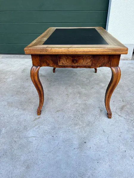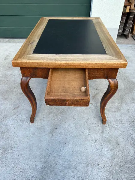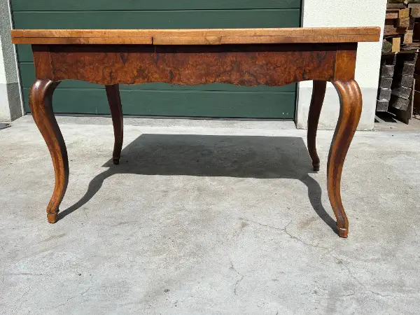und 2 Schubladen, beidseitig ausziehbar mit geschwungenen Tischbeinen, Antik