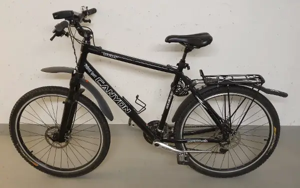 , 26" Stollenreifen, 54er Rahmen (M) , 24 Gänge spezielle Deore Shimanoschaltung/ Bremshebel, Scheibenbremsen vorne und hinten, Schmutzschutz, Packträger, gefederter