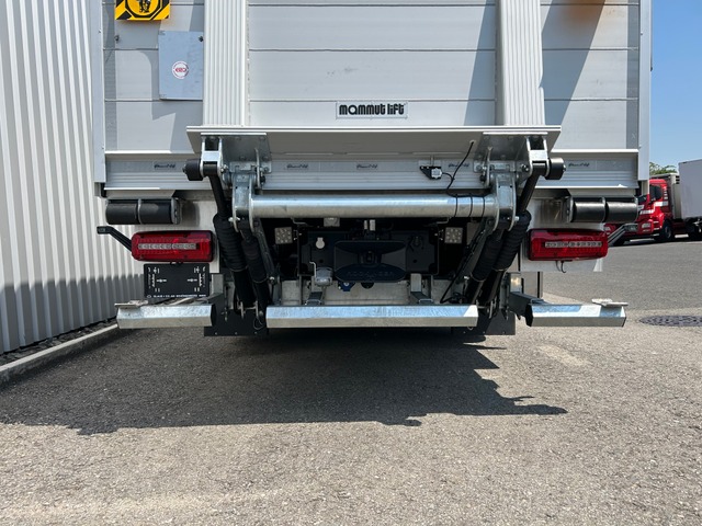 Bemerkung: Koffer mit Hebebühne, LxBxH innen 7'350 x 2'491 x 2’480 mm, 3 Reihen Zurrschienen, 7 Paar Binderinge, Bodenstaufach, LED Beleuchtung im Aufbau, Hebebühne 2'000 kg