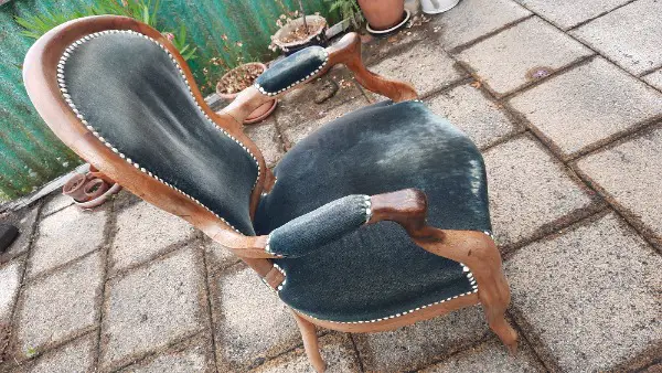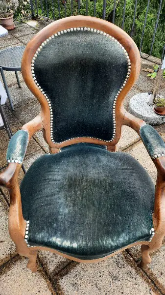 Sessel ist original gepolstert, antik. benutzt, hat Gebrauchsspuren aber in gutem Zustand gemäss Fotos. Das