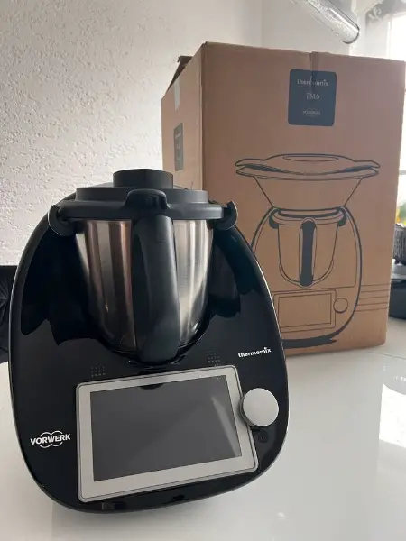 Thermomix Black Edition, der sich in sehr gutem Zustand befindet. Der Thermomix kommt im Originalkarton und wurde stets sorgfältig gepflegt. Er eignet sich hervorragend für alle, die ihre Kochkünste erweitern möchten und einen leistungsstarken