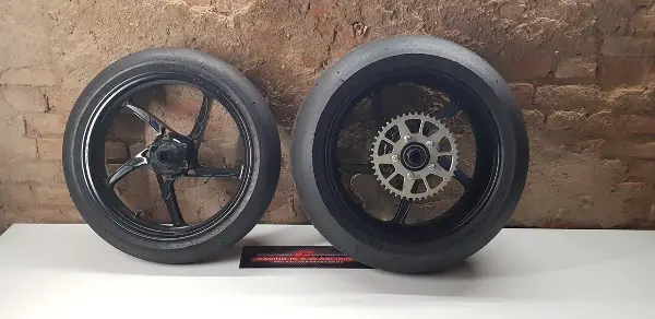 Die handelt Reifen sich vorne um einen Pirelli Superbike SC1 und hinten um einen SC2. Beide wurden nur kurz angefahren und sind somit ebenfalls in neuwertigen Zustand. Ich würde sagen 98% Restprofil.