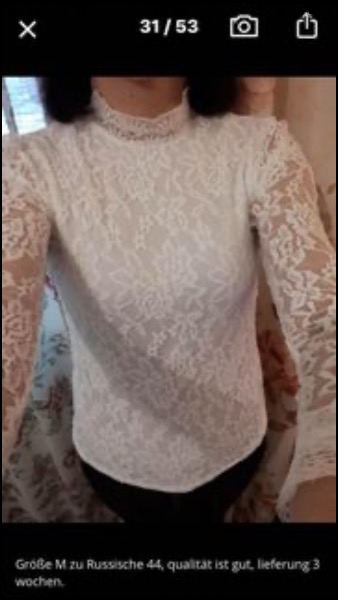 Elegante, edle, gefütterte Spitzen-Bluse in den Grössen 40, 42 und 44 in Weiss und Schwarz, sehr angenehm und weich. Preis 38.- inkl. Versand.