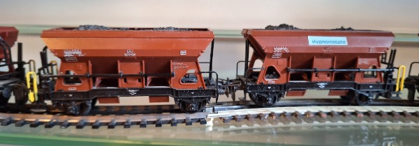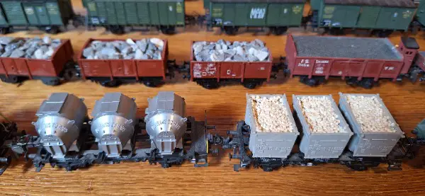 Extrem viele schöne Kieswagen, mit Steinen, und mit Kohlen beladene Wagen.