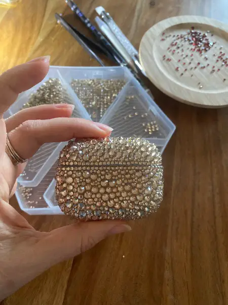 Neuwertig. Handmade, mit Strasssteinen eingelegt. Sehr glänzend.