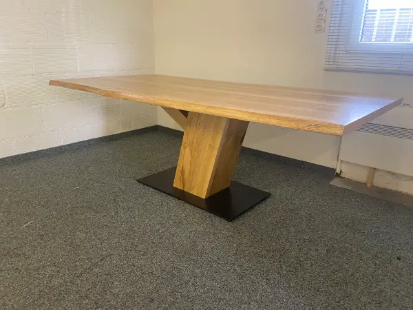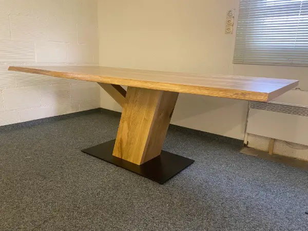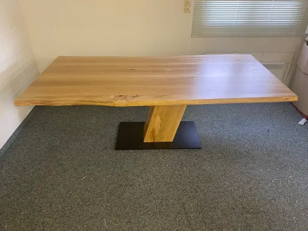 Tischbeine verleihen dem Massivholztisch Yasha eine skulpturartige Erscheinung. Diese Fussform steht auf einer sehr stabilen Standfläche aus Metall 90 x 50 cm und ermöglicht dadurch eine optimale Beinfreiheit. Durch seine Naturkanten bekommen Sie ein absolutes Tischunikat aus
