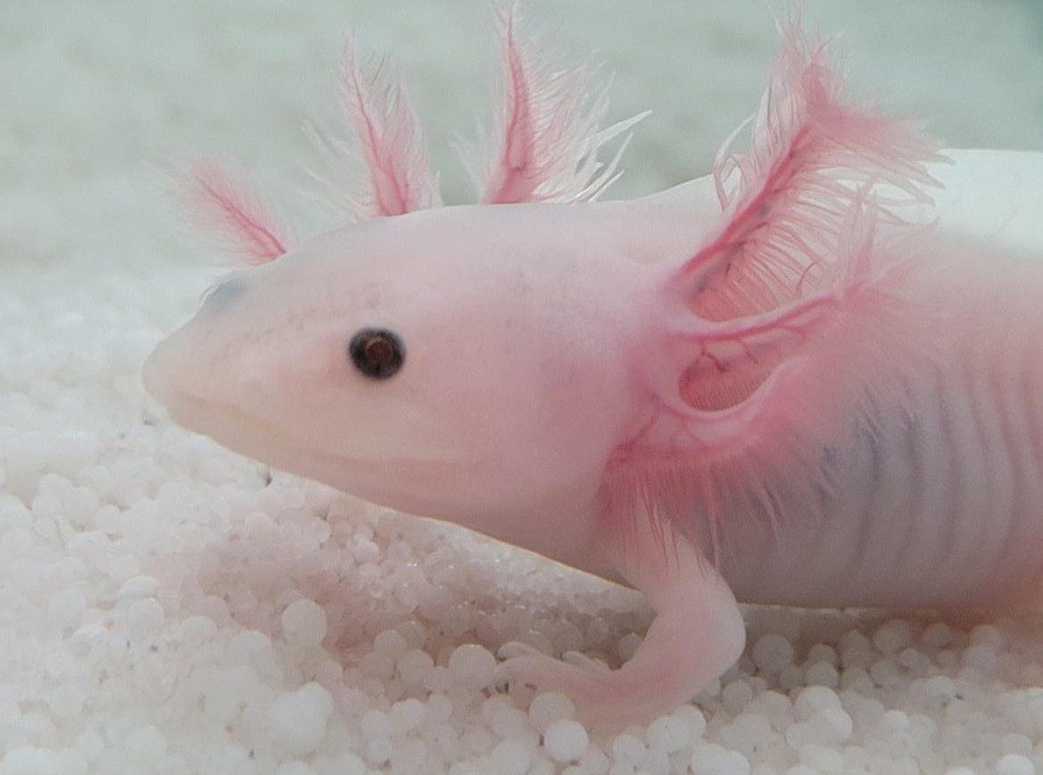 Axolotl Ambystoma mexicanum - Weisslinge und Wildtype