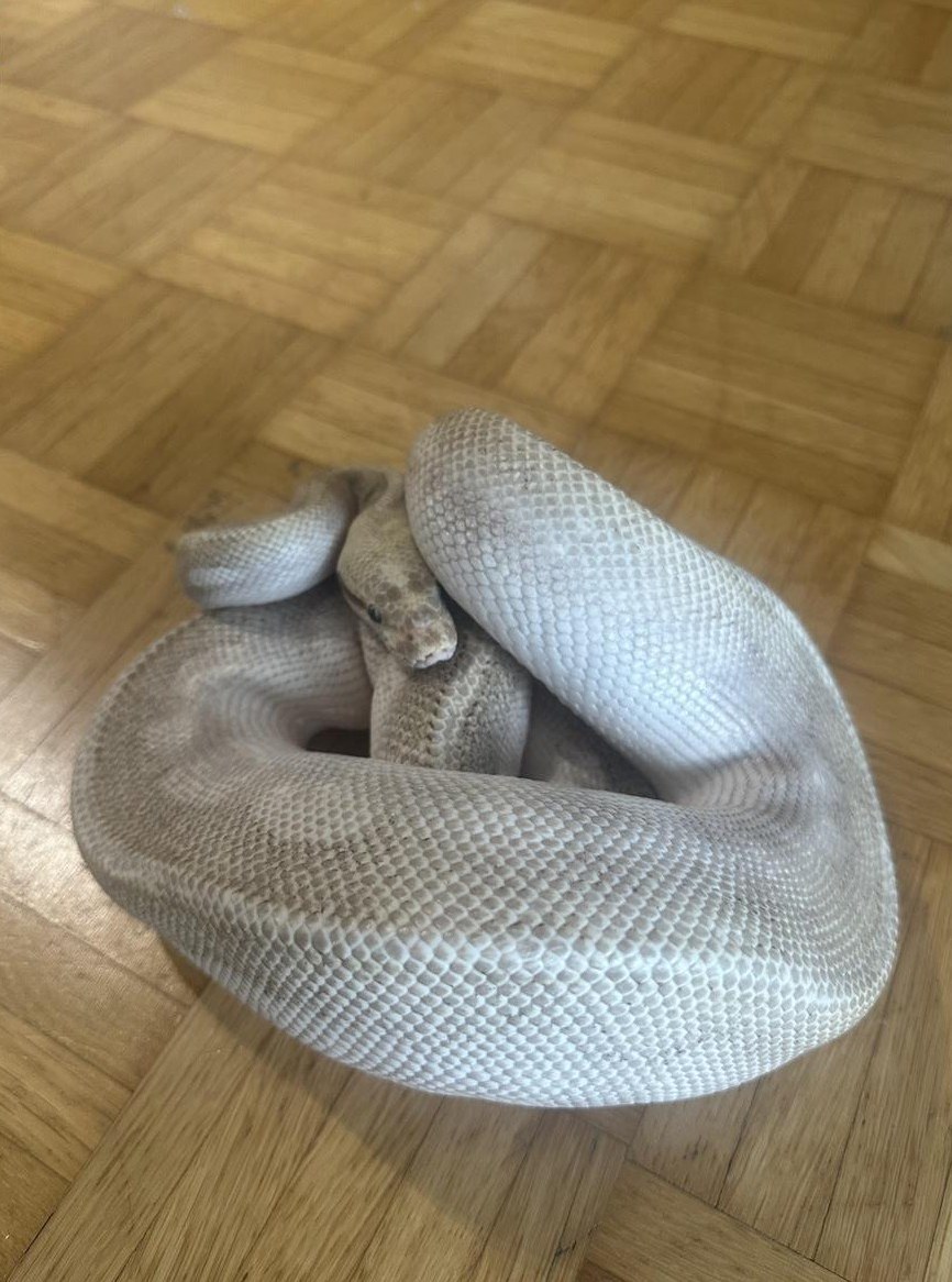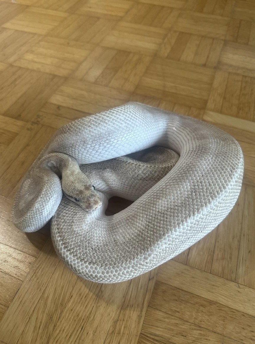 Schlange wiegt ca. 1400g und wurde 2014 geboren. Er ist kräftig und weist ein normales Verhalten eines Python regius auf und frisst problemlos Frostratten.
