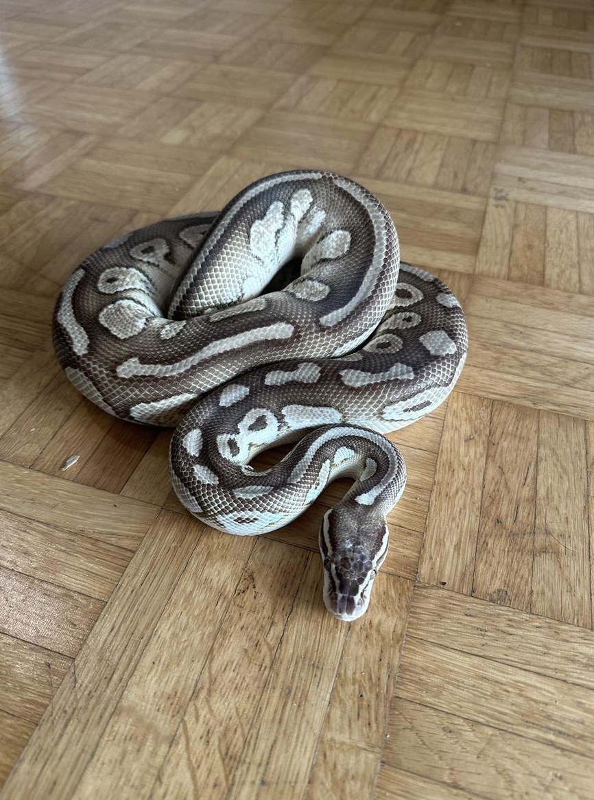 Schlange wiegt ca. 1400g und wurde 2011 geboren. Er ist kräftig und weist ein normales Verhalten eines Python regius auf und frisst problemlos Frostratten.