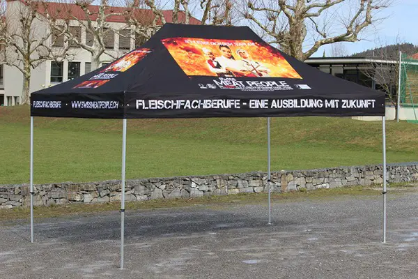 Gerne offerieren wir Ihnen das Bedrucken des Daches oder der Seitenwände