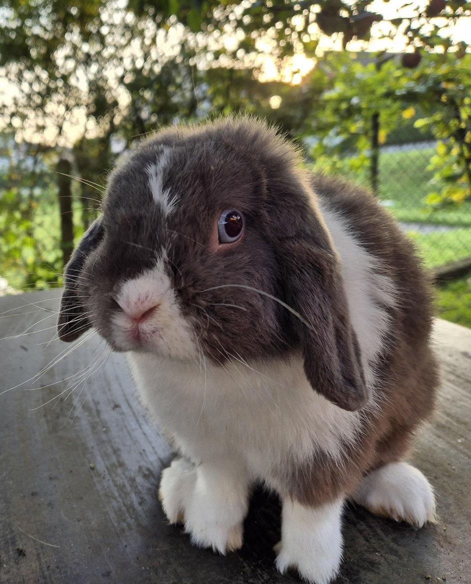 2-jähriger Minilop Zuchtrammler, Farbe blau-weiss mit blauen Augen, vererbt verschiedene Farben. Auf Wunsch kann der Minilop