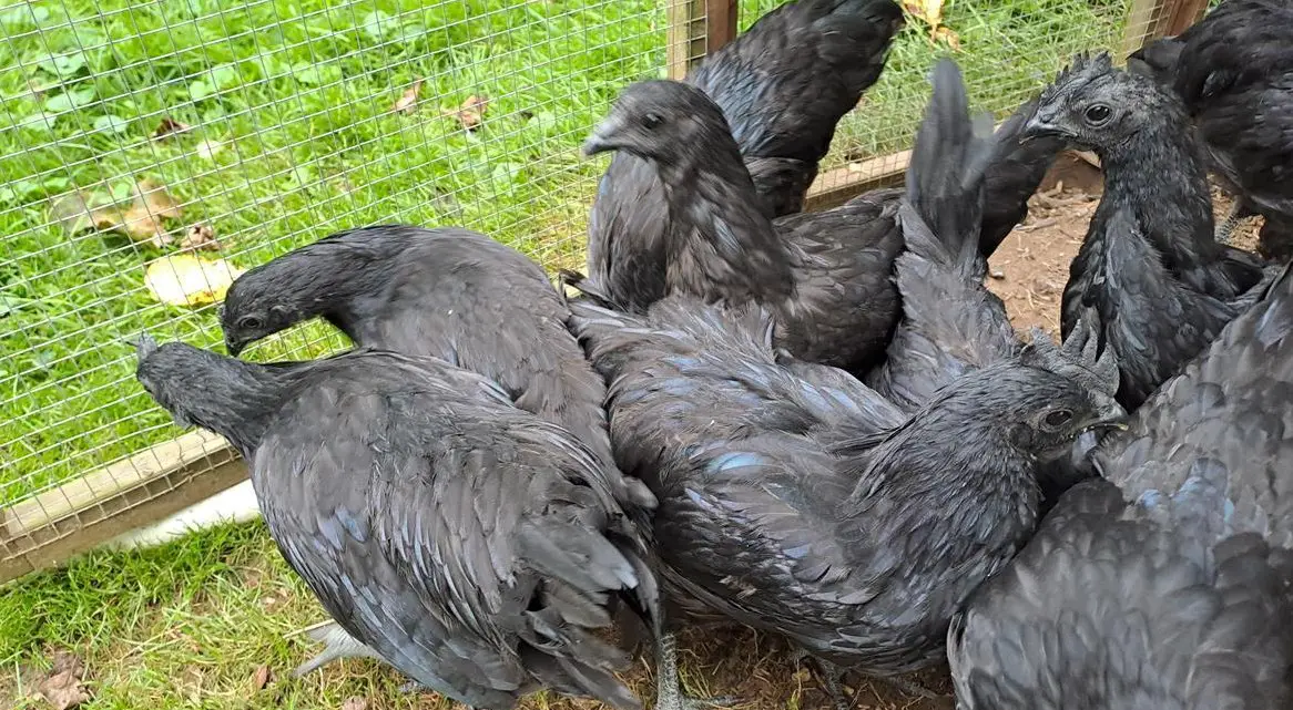 Cemani Güggeli, 13 Wochen alt. Lebendige, neugierige Rasse, die gern viel Umschwung hat, aber Achtung, sehr gute Flieger. Aus registrierter Hühnerzucht, ausschliesslich mit Bio Futter und vom Auslauf gefüttert. Weitere Infos zu den Ayam Cemani Güggeli auf Anfrage.