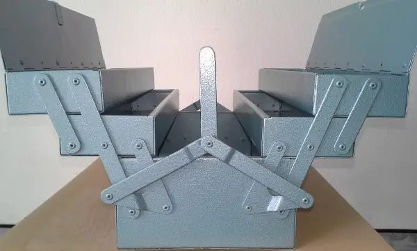 Vier aufklappbaren Seitenfächer und Bodenfach.