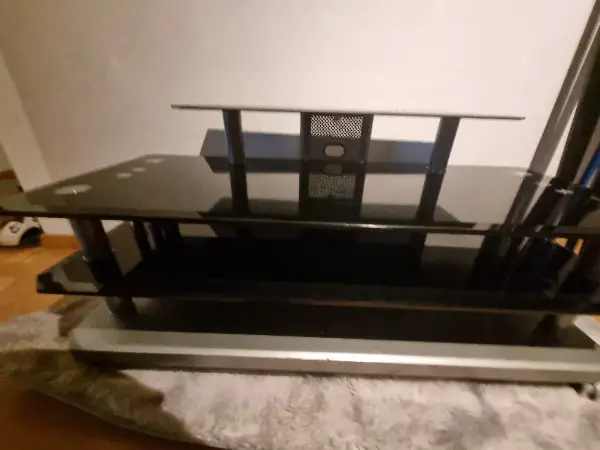 Fernsehtisch GRATIS, hat Gebrauchtsspuren, siehe Fotos. Der Tisch ist sehr schwer, da aus Glas, Farbe ist schwarz.