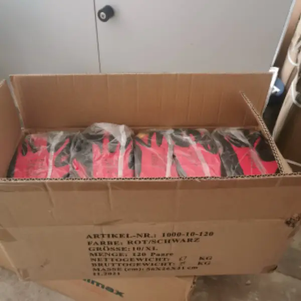 in Rot/Schwarz. Die Handschuhe sind Grösse 10/XL und Unisex. Ideal für Handwerk, Gartenarbeit oder andere Tätigkeiten. Preis gilt für die gesamte