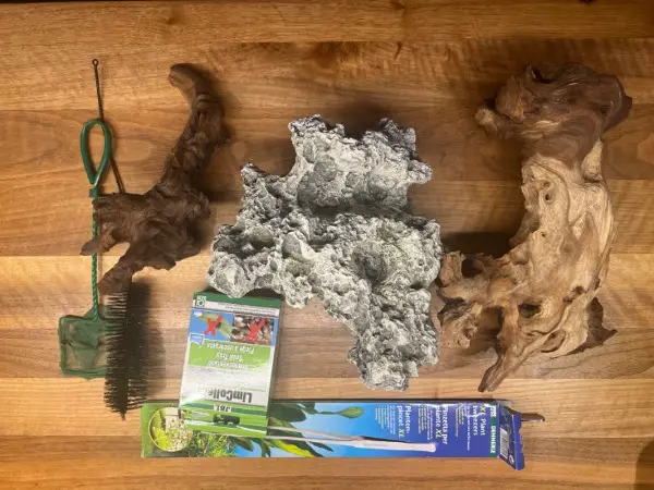 Vielfältiges Zubehör, wie Wasserschlauch, Wurzeln ist dabei.